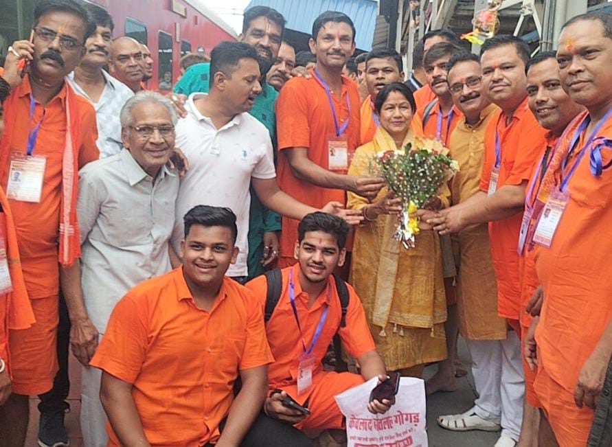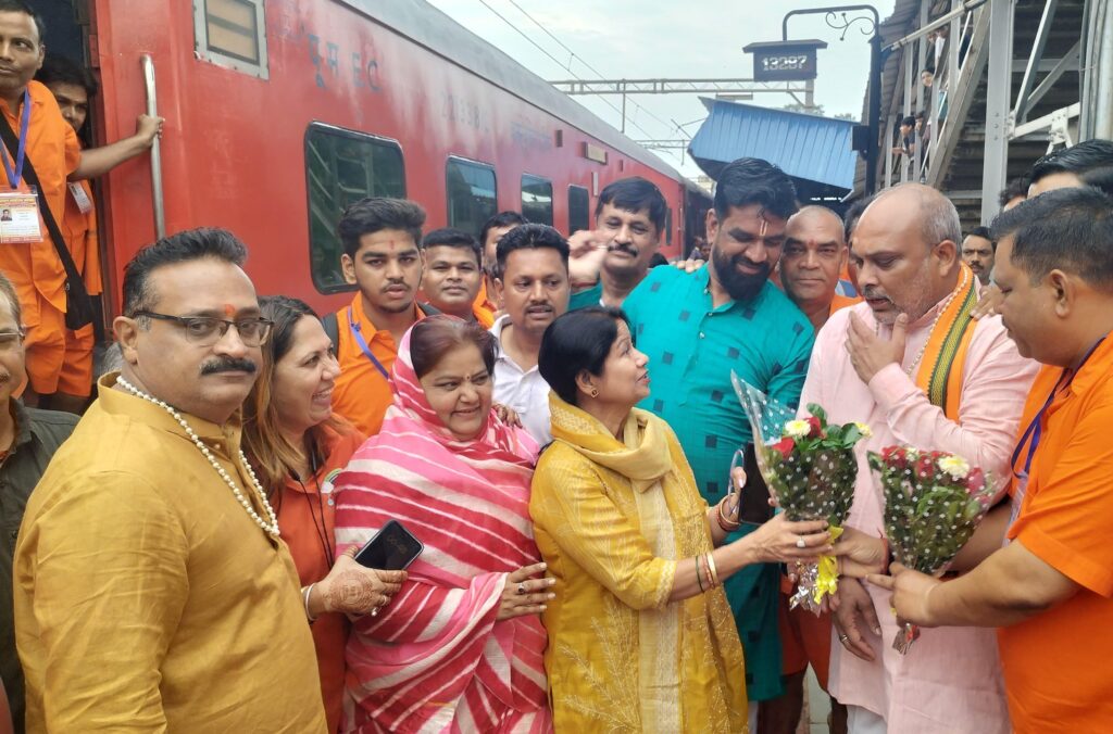 यात्रा पर रवाना हो रहे श्रद्धालुओं का पुष्प वर्षा कर सम्मान किया गया और उनकी सुरक्षित व मंगलमय यात्रा के लिए शुभकामनाएँ दी गईं। स्टेशन परिसर “बोल बम” व “हर हर महादेव” जैसे भक्ति नारों से गूंज उठा।