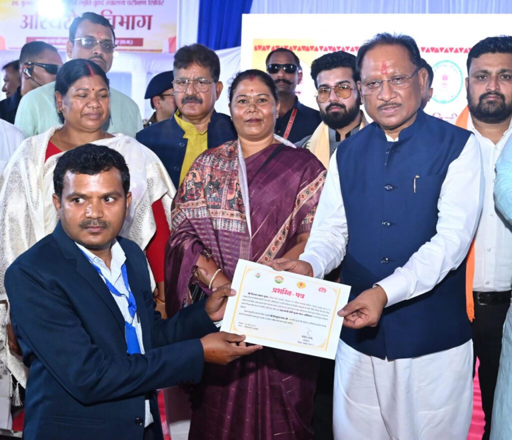 मुख्यमंत्री साय ने प्रधानमंत्री जनआरोग्य योजना के तहत आयुष्मान कार्ड और वय वंदना कार्ड सुंदर यादव, सुनिता बाई, भगवती सिंह, फ्रांसिस तिग्गा, प्लासिदियस केरकेट्टा, खिलासो बाई को वितरित किए। इसके साथ ही, प्रधानमंत्री टीबी मुक्त भारत अभियान के तहत 10 टीबी मरीजों को फूड बास्केट का वितरण किया।