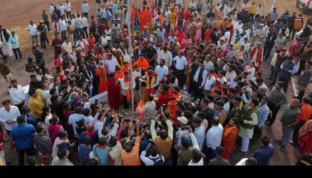 ट्विन सिटी भिलाई के जयंती स्टेडियम में होने वाली पंडित धीरेंद्र कृष्ण शास्त्री की ‘दिव्य हनुमंत कथा’ की औपचारिक तैयारियां शुरू हो गई हैं। रविवार को आयोजन स्थल पर वैदिक मंत्रोच्चार के बीच ध्वज पूजन समारोह संपन्न हुआ। इस दौरान पूरा मैदान ‘जय श्रीराम’ और ‘जय हनुमान’ के जयकारों से गूंज उठा। भाजपा प्रदेश अध्यक्ष किरण सिंह देव, राष्ट्रीय उपाध्यक्ष सरोज पांडेय और उप मुख्यमंत्री विजय शर्मा ने विधि-विधान से हनुमान जी का भगवा ध्वज फहराकर कथा की तैयारियों का श्रीगणेश किया।