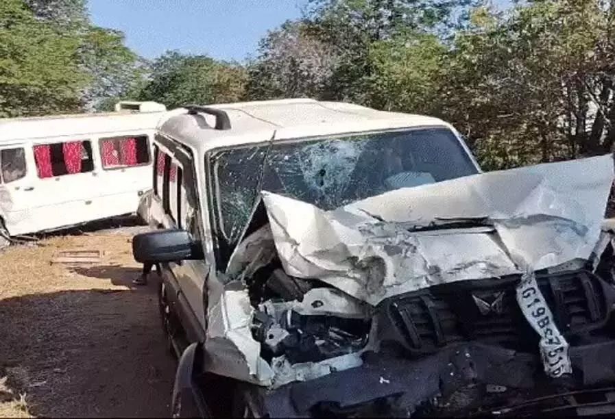 महाकुंभ से लौट रही टूरिस्ट बस और स्कॉर्पियो के बीच जबरदस्त टक्कर, एक की मौत, 7 घायल